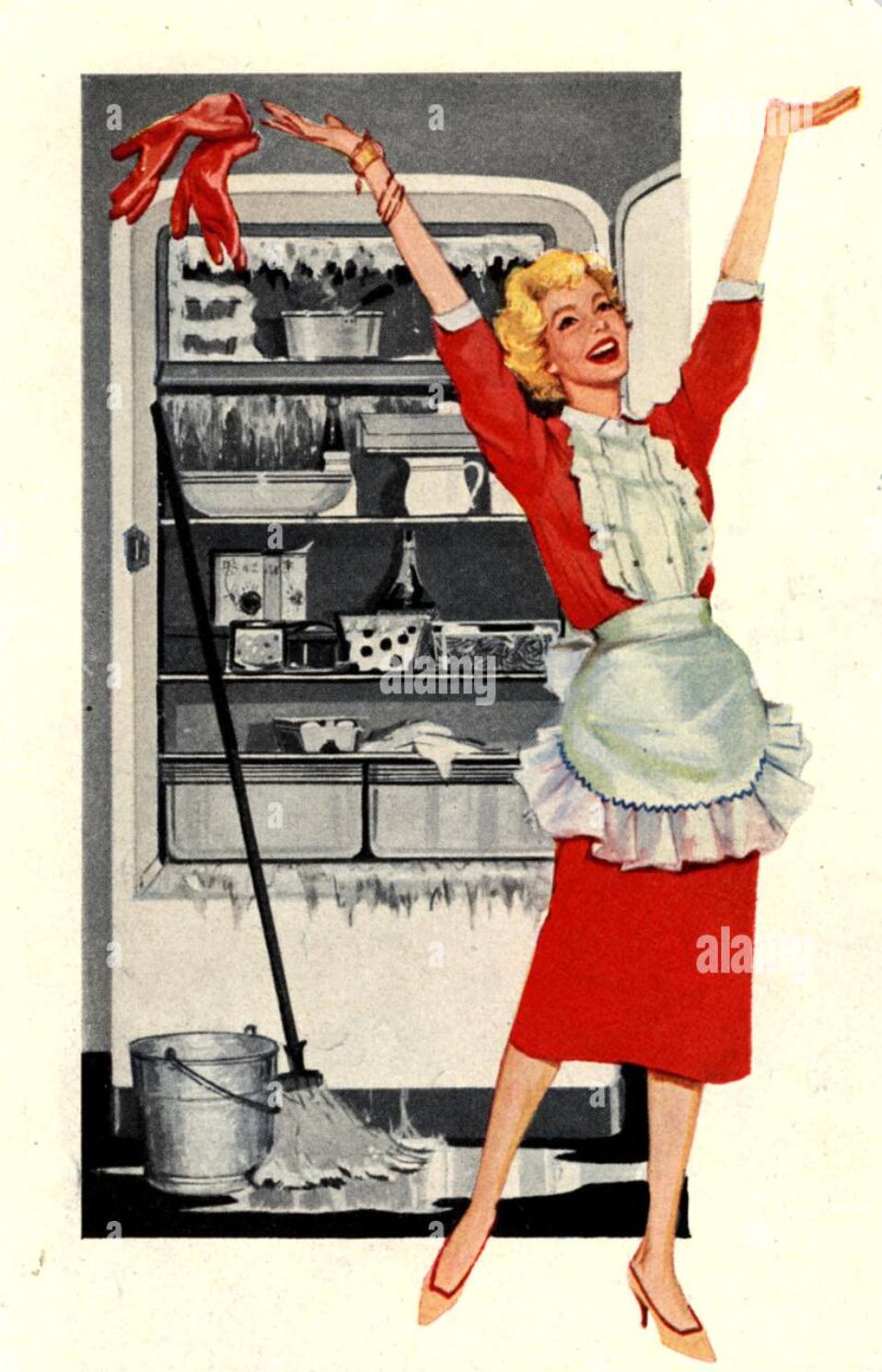 In her book More Work for Mother sociologist Ruth Schwartz Cowan explains that appliances didn’t reduce the number of hours spent on housework. Appliances raised the standards for cleanliness. Before washing machines, people washed their shirts once a week and linens once a month. After washing machines, they washed their clothes after every wear. The machine was faster, but demand increased commensurately. As a result housewives in the 1950s and 60s spent roughly the same amount of time on domestic labor as their grandmothers did in the 1910s, they just produced cleaner homes.