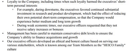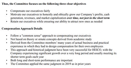 Another example of their practical thought process comes from the 2019 proxy discussing the executive’s compensation plan: